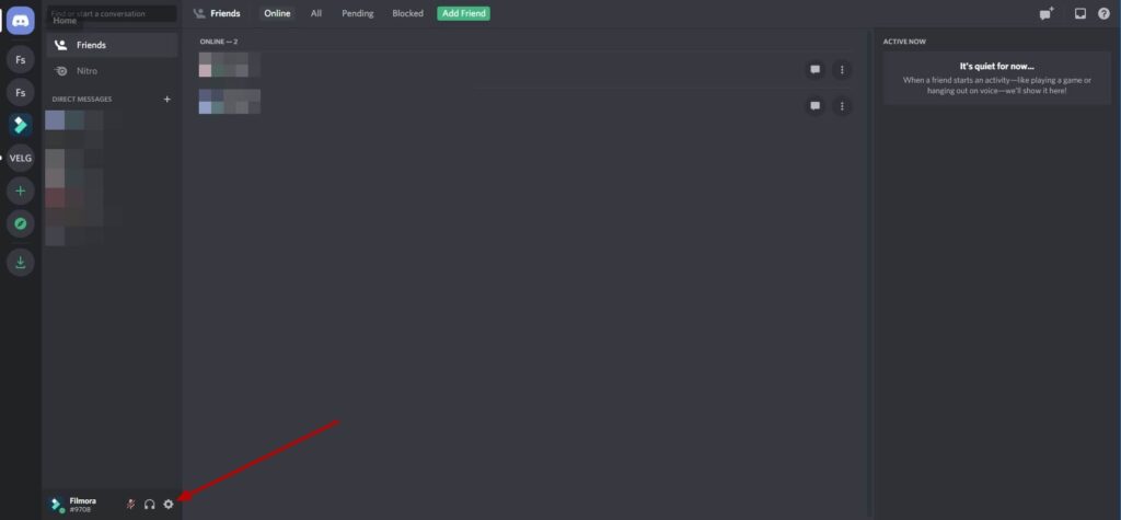 Para desactivar las notificaciones de Discord, primero debes acceder a la configuración de la aplicación. En la esquina inferior izquierda de la pantalla, haz clic en el icono de configuración, que se ve como un engranaje.